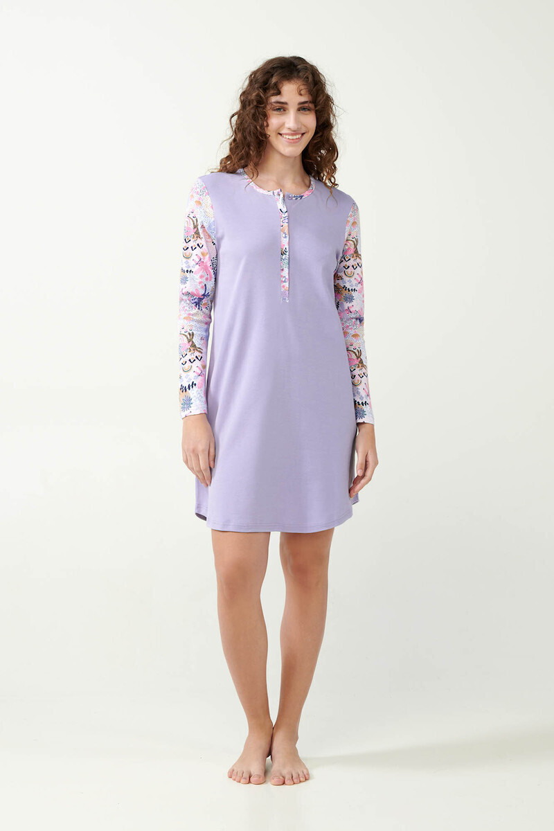 Vamp Χειμερινό Βαμβακερό Γυναικείο Νυχτικό Lavender 21301