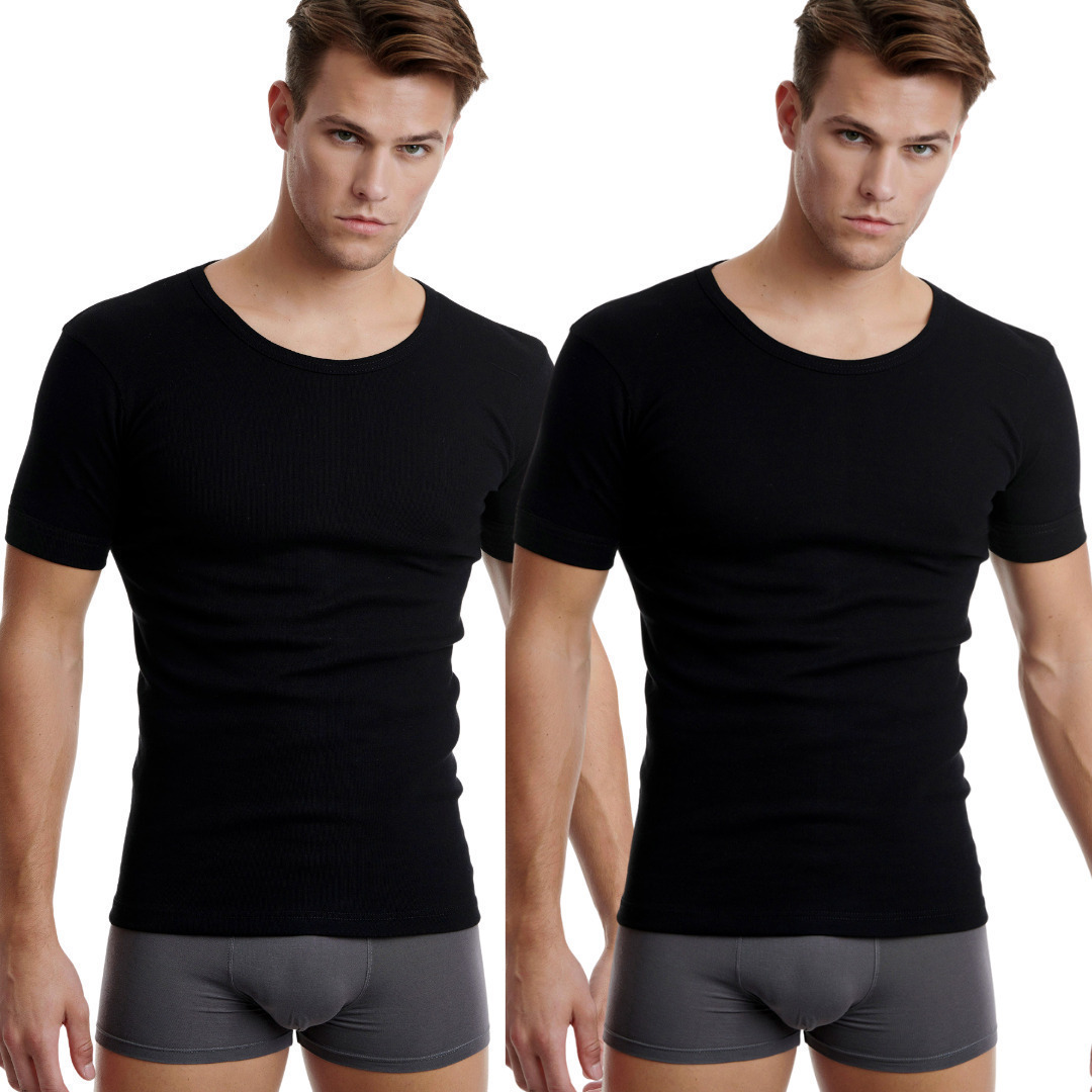 Walk Ανδρικές Φανέλες Κοντομάνικες σε Μαύρο Χρώμα 2Pack W1960-2-02