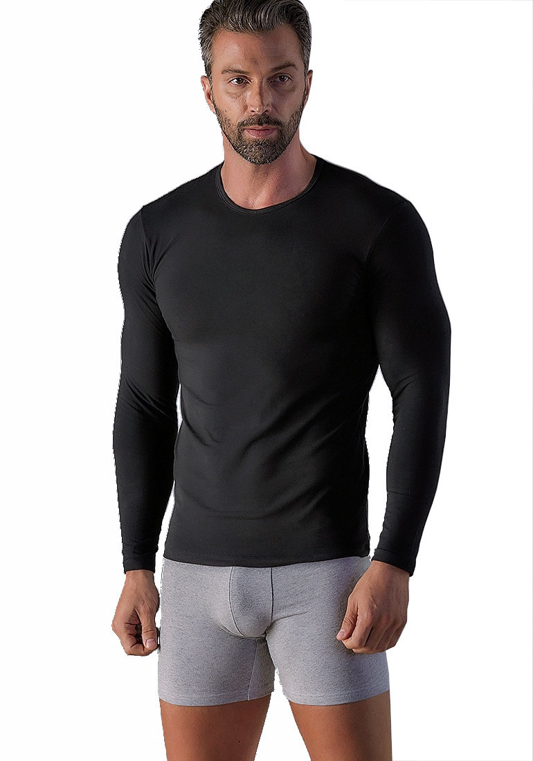 Wrap Μαύρη Μακρυμάνικη Βαμβακερή Ελαστική Ανδρική Φανέλα.
