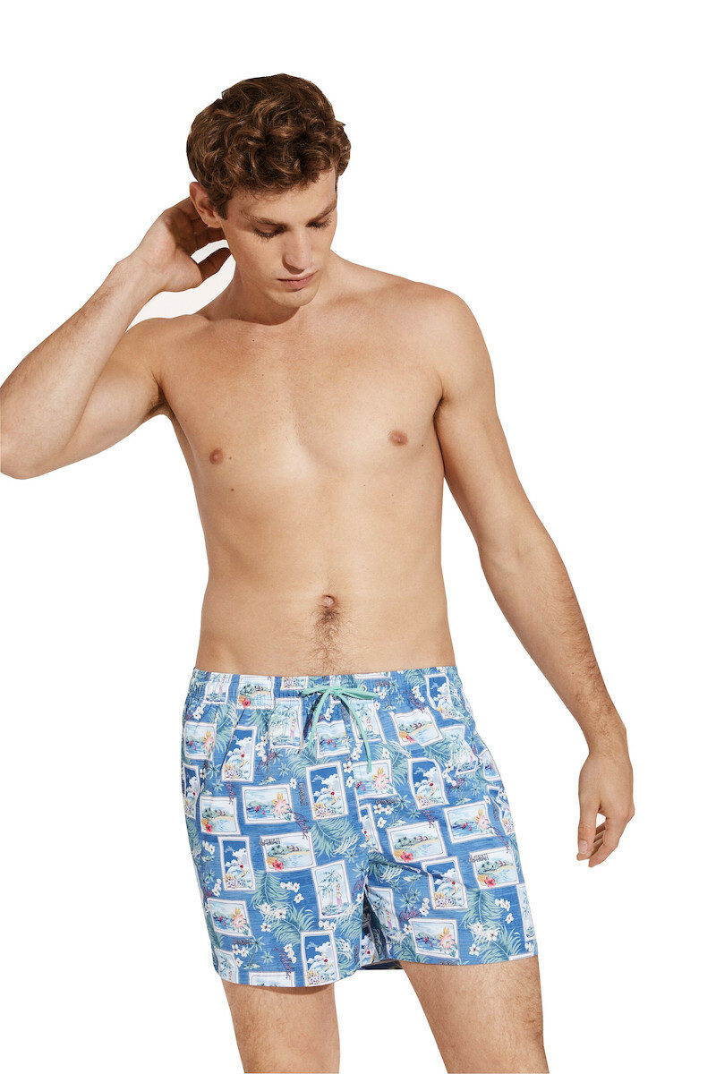 Ysabel Mora μπλε εμπριμέ ανδρικό μαγιό σορτς.