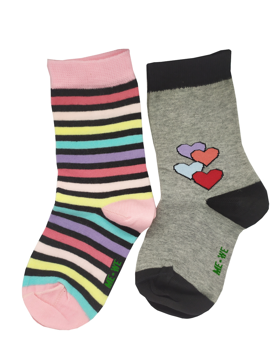 2 Pack Me-We γκρι/ριγέ παιδικές κάλτσες με σχέδιο.