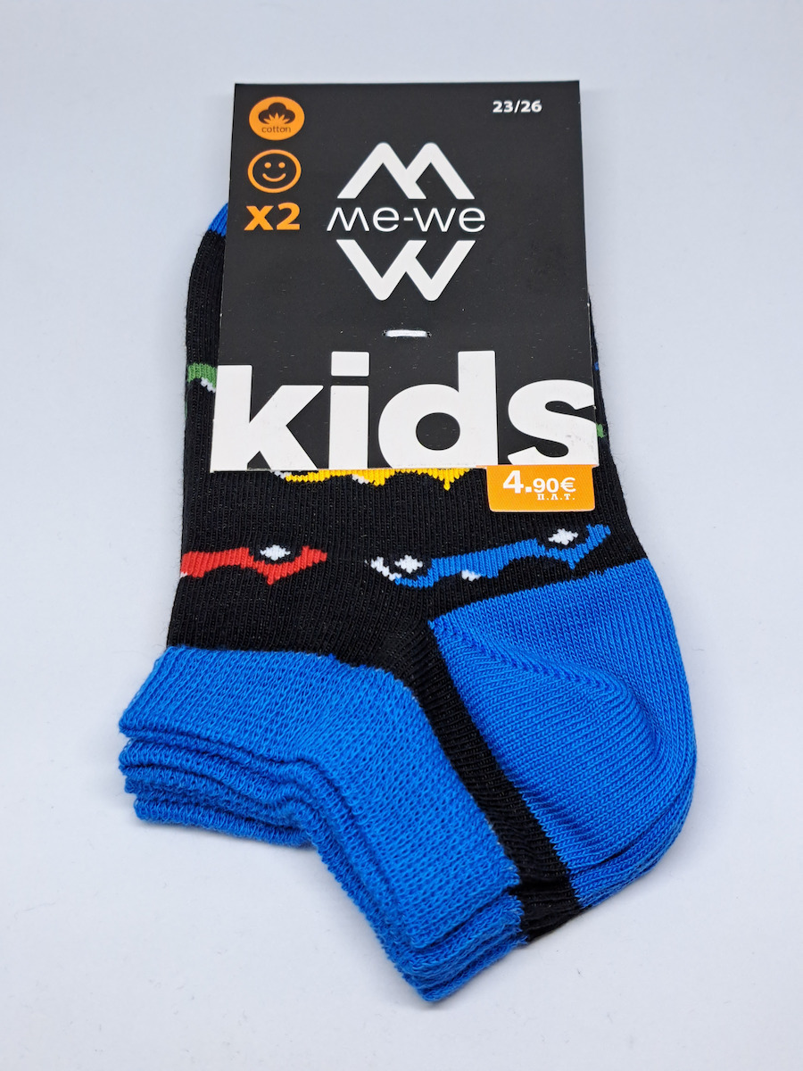 2 Pack Me-We Κοντές Παιδικές Κάλτσες Μαύρες/Μπλε Φτέρνα Με Αυτοκίνητα.