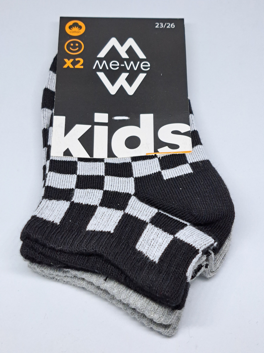 2Pack Me-We Καρό Κοντές Παιδικές Κάλτσες Μαύρες/Γκρι.