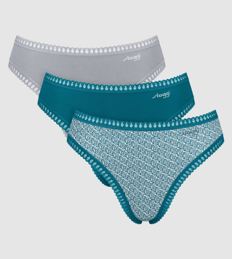3Pack Sloggi High Leg Go Crush Βαμβακερά Slip Πετρόλ/Γκρι/Εμπριμέ.