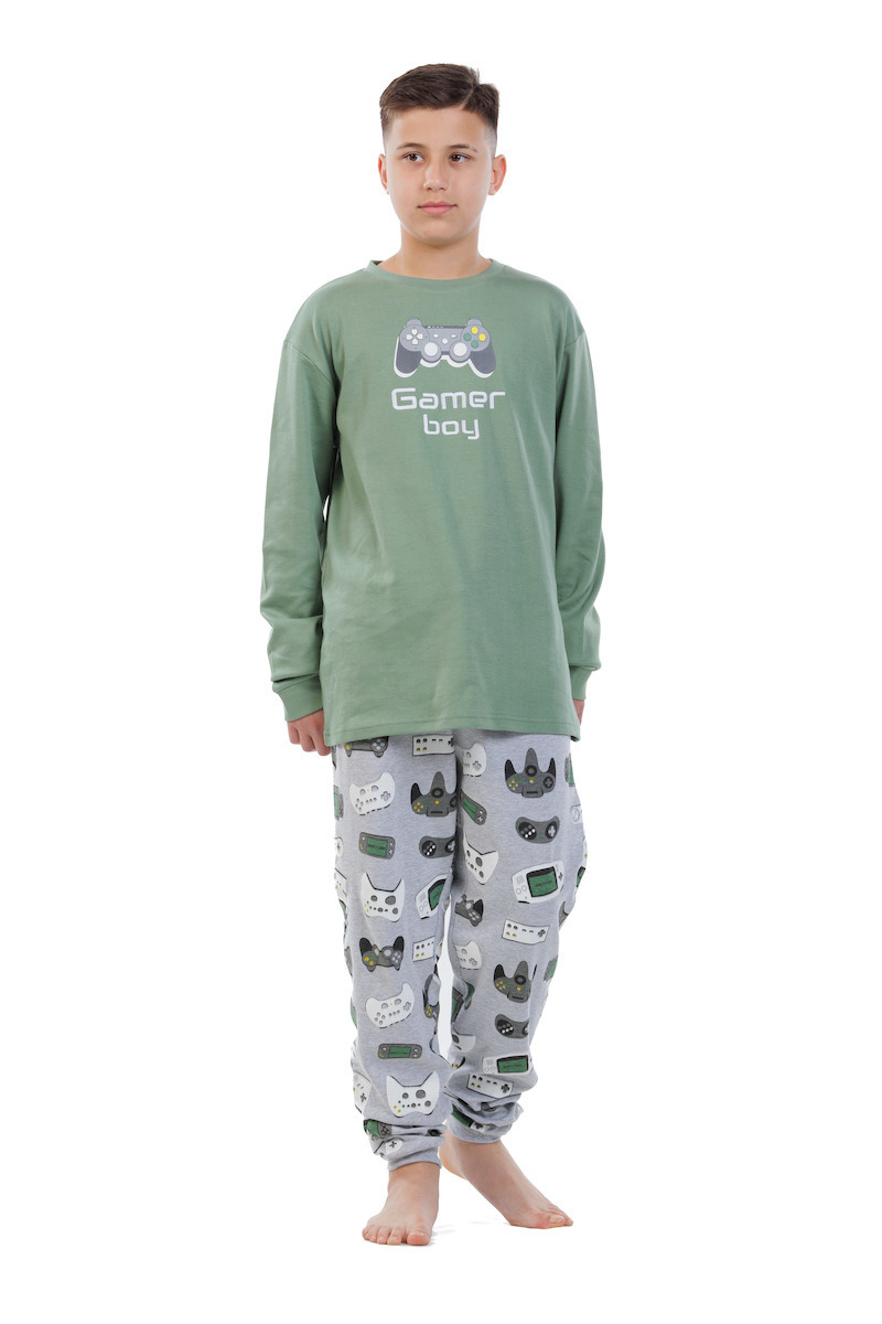 Mei Βαμβακερές Παιδικές Πιτζάμες Πράσινες/Γκρι. (Κωδ.: 702565)