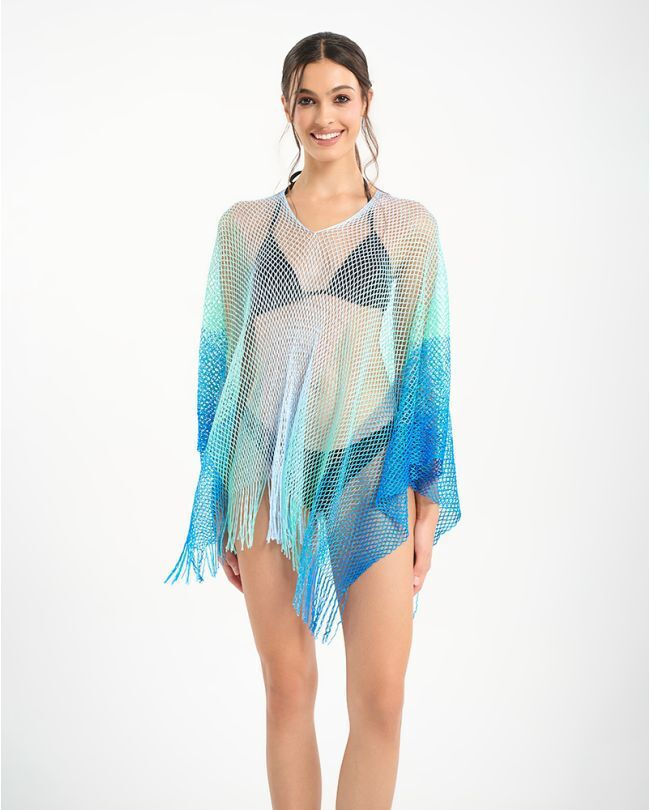 Ble Resort Collection Διχτυωτό Κιμονό Μπλε.