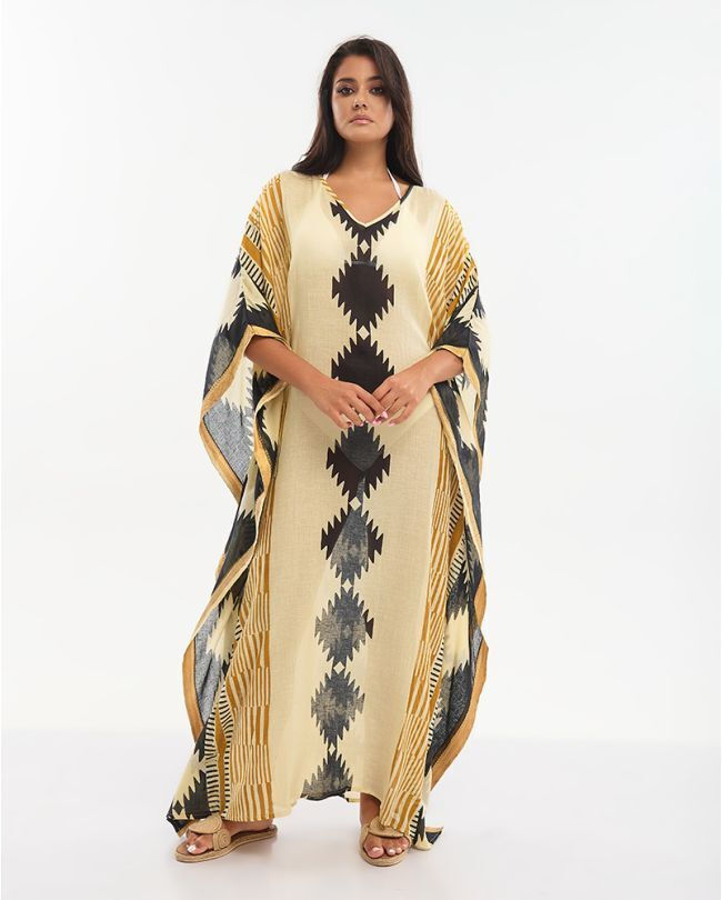 Ble Resort Collection Καφτάνι Μακρύ Μπεζ/Μαύρο.