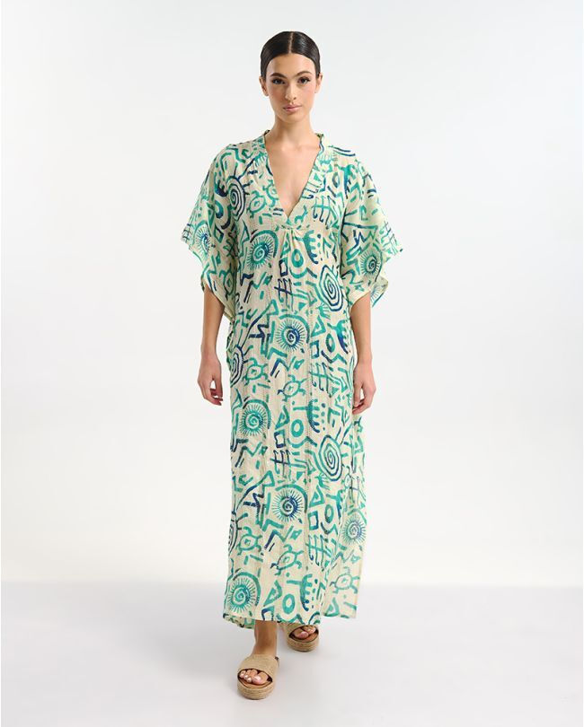 Ble Resort Collection Μακρύ Καφτάνι Εκρού/Πράσινο.