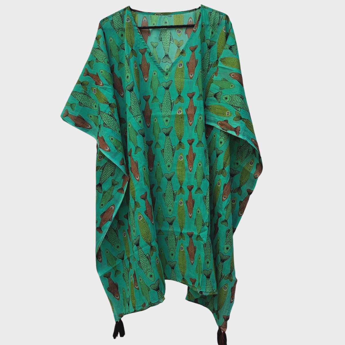 Ble Resort Collection Πράσινο Καφτάνι Με Ψάρια.