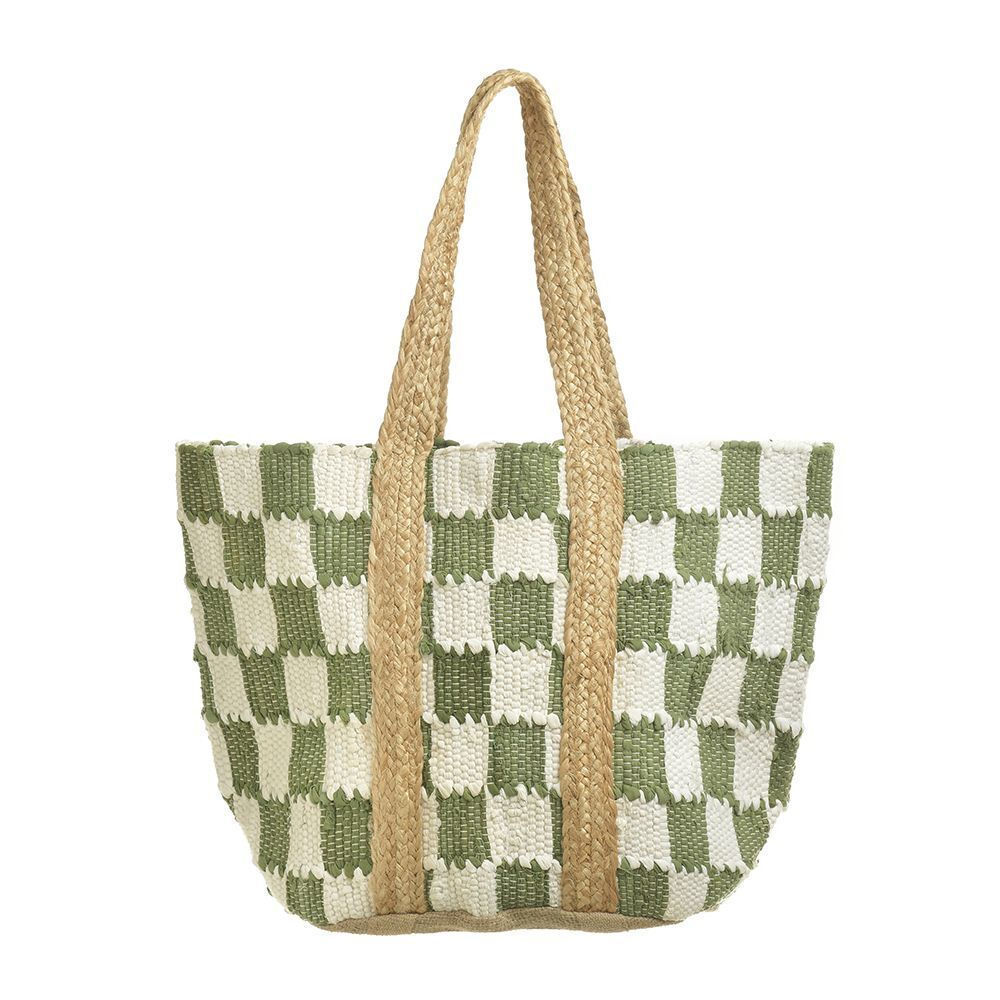 BLE ΤΣΑΝΤΑ ΑΠΟ ΓΙΟΥΤΑ ΛΕΥΚΟ/ΠΡΑΣΙΝΟ 60x40 (70%COTTON 30%JUTE)