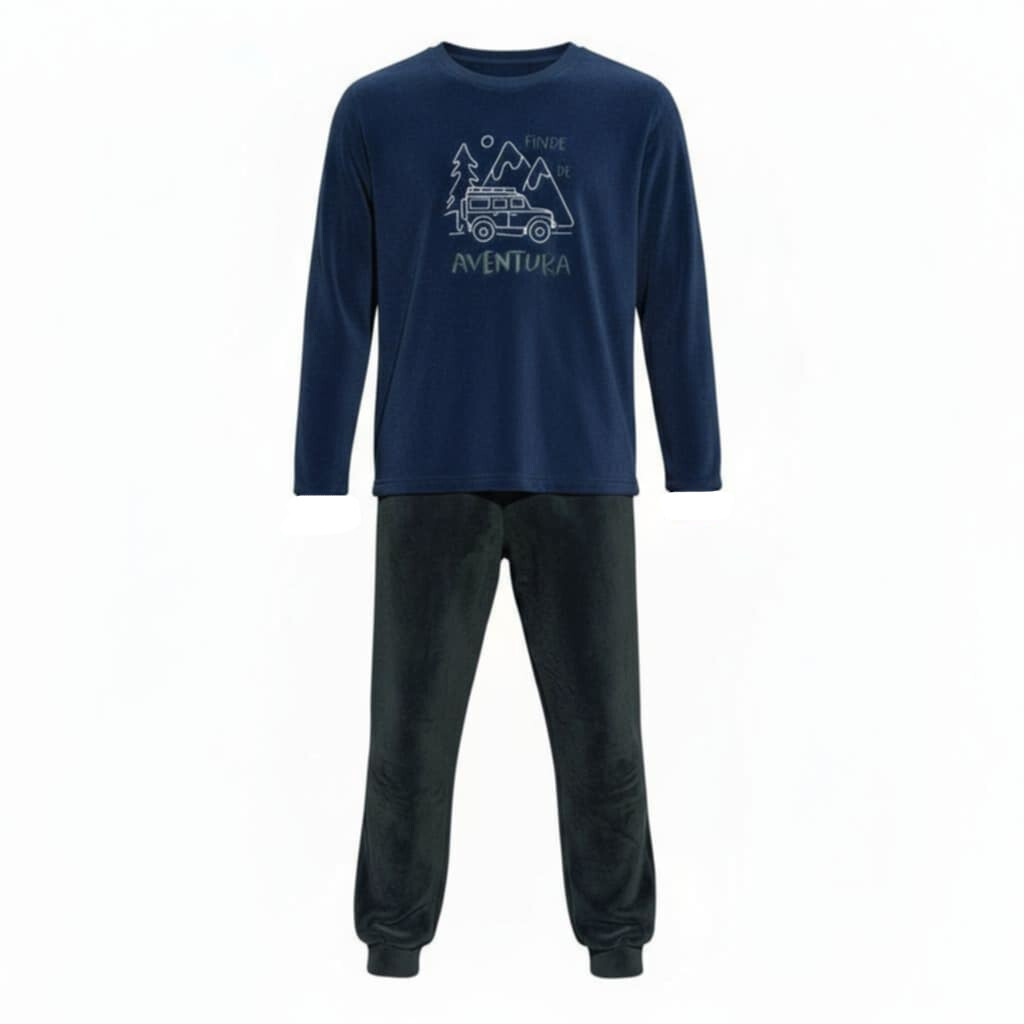 Dark Elephant Fleece Χνουδωτή Μπλε/Κυπαρισσί Ανδρική Πιτζάμα.
