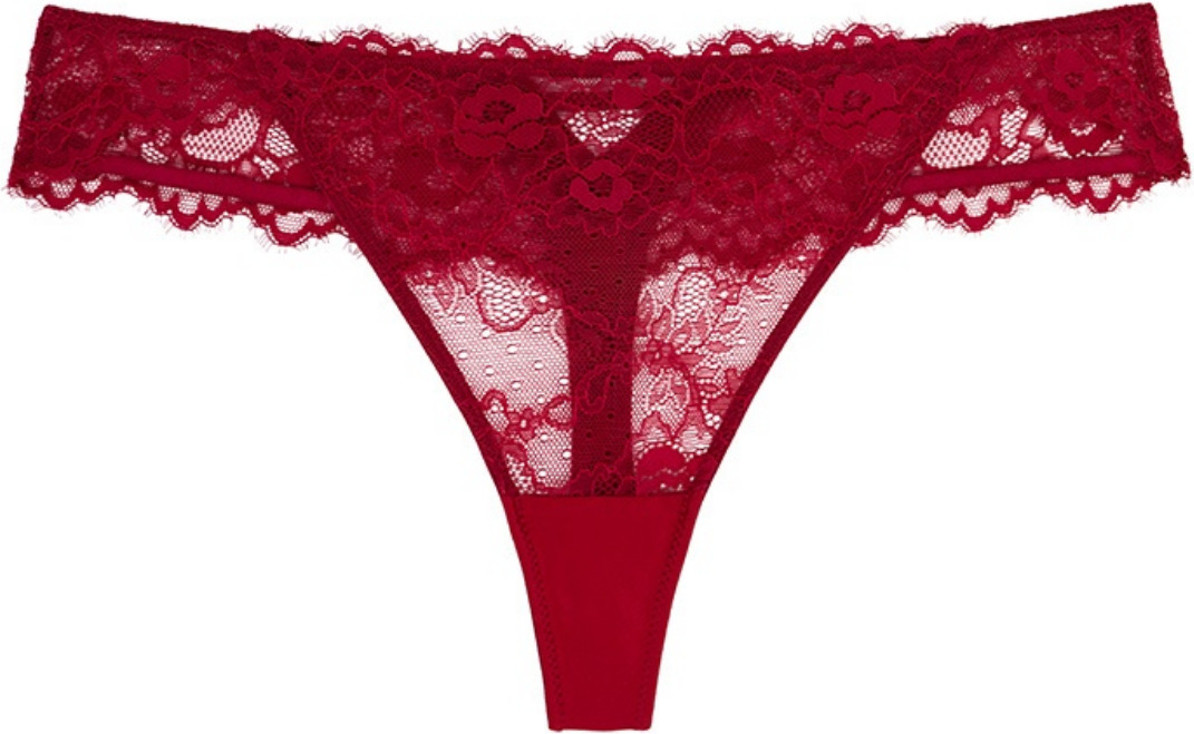 Diaz String. Γυναικείο εσώρουχο σκούρο κόκκινο, με δαντέλα.