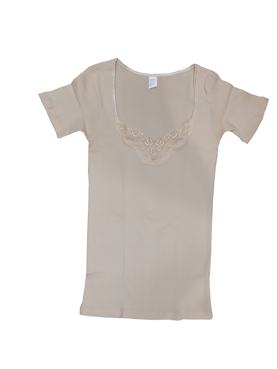 Dreams μπεζ γυναικείο φανελάκι με κοντό μανίκι και δαντέλα.
