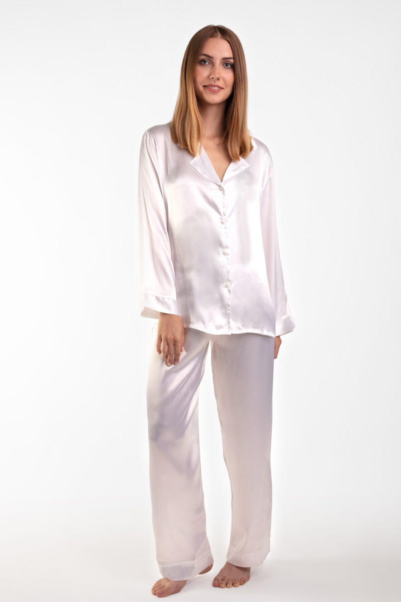 Elite εκρού σατέν κουμπωτή γυναικεία πιτζάμα.