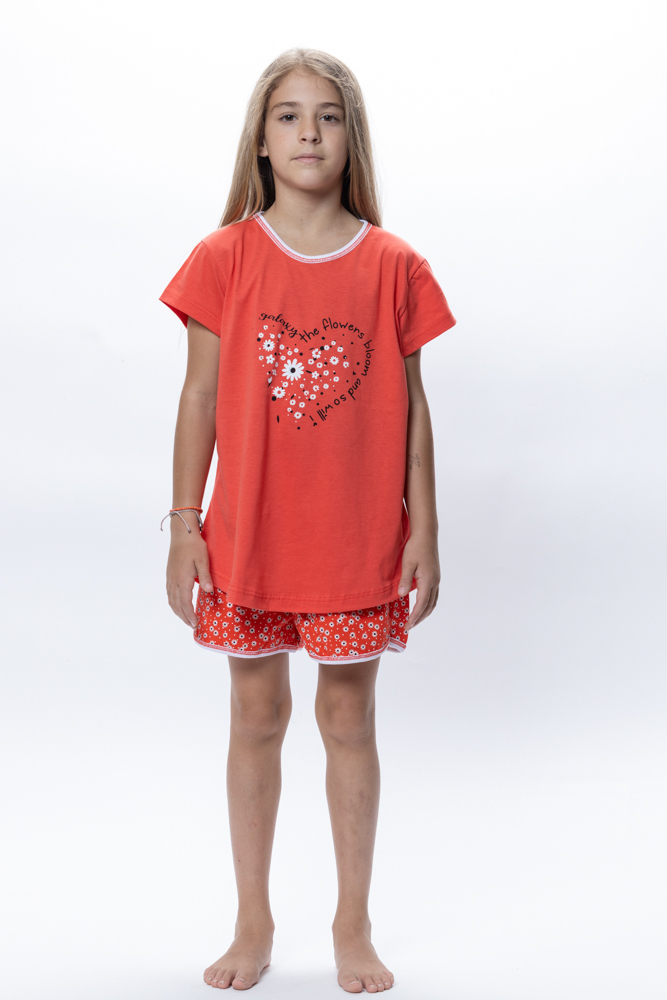 Galaxy Παιδική Πιτζάμα Καλοκαιρινή Βαμβακερή Κοραλί 328-25