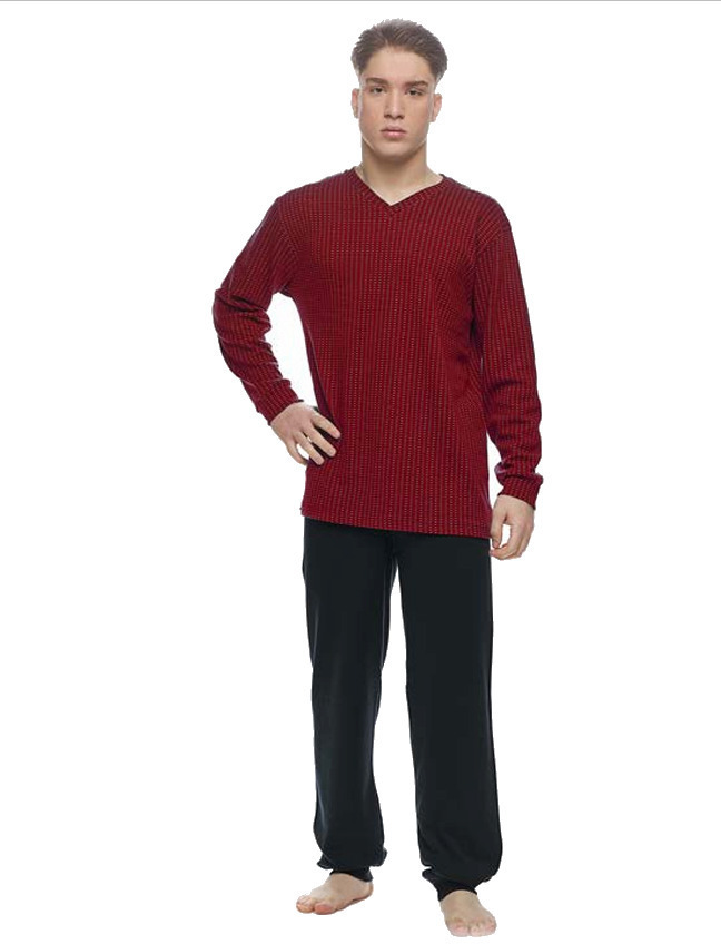 Galaxy Βαμβακερές Ανδρικές Πιτζάμες Ζακάρ Μπορντό/Μάύρο Με V.