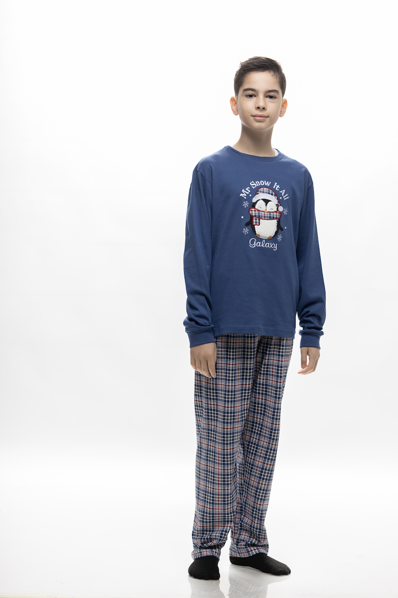 Galaxy Βαμβακέρες Μπλε/Καρό Παιδικές Πιτζάμες Unisex.