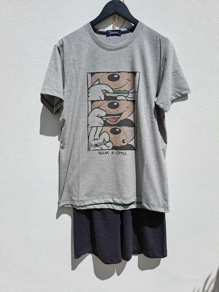 Galaxy Βαμβακερή Ανδρική Πιτζάμα Γκρι/Ανθρακί.
