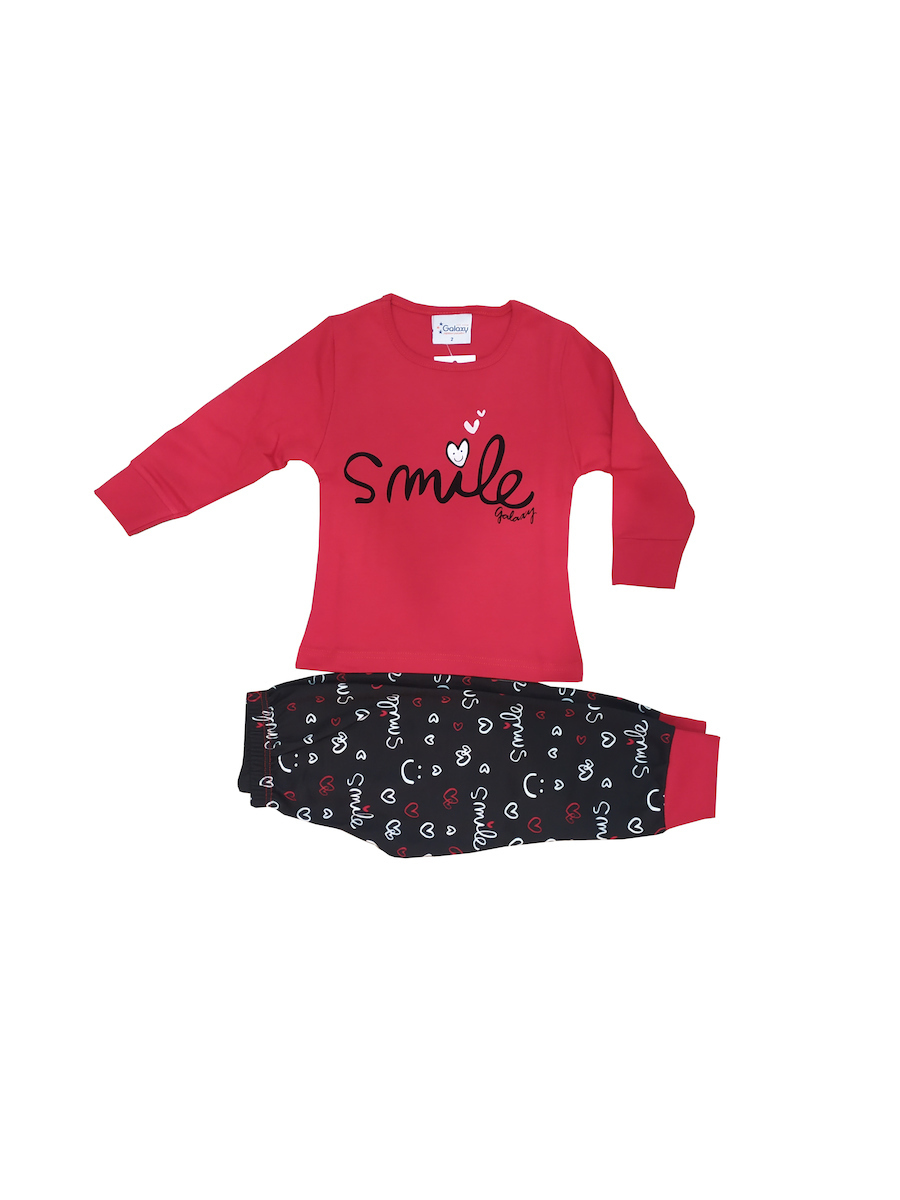 Galaxy βαμβακερή κόκκινη/μαύρη παιδική πιτζάμα "Smile".