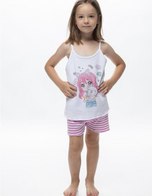 Galaxy βαμβακερή λευκή/φούξια παιδική πιτζάμα.