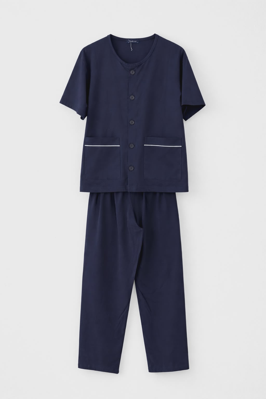Galaxy Βαμβακερή Μπλε Κουμπωτή Ανδρική Πιτζάμα Με Τσέπες.