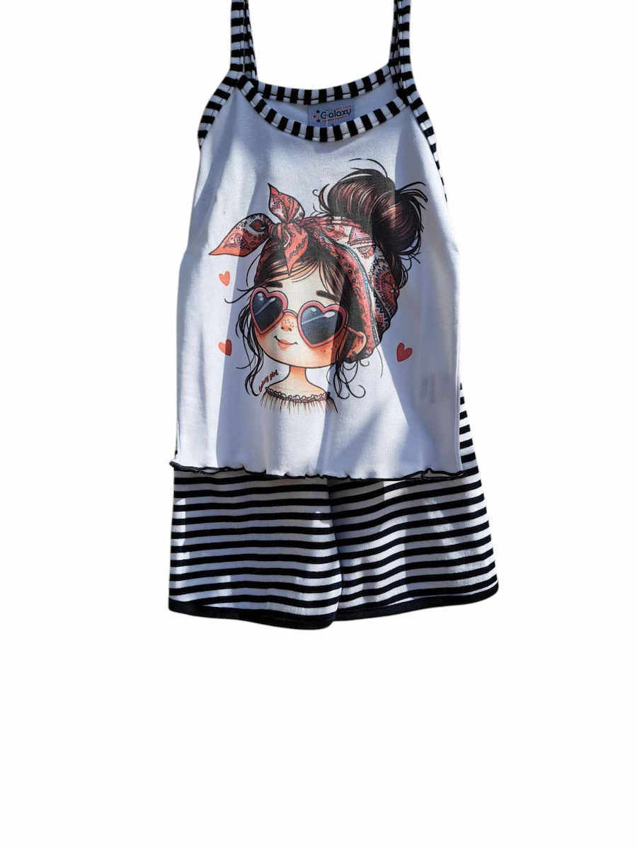 Galaxy Βαμβακερή Παιδική Πιτζάμα Λευκή/Μπλε.