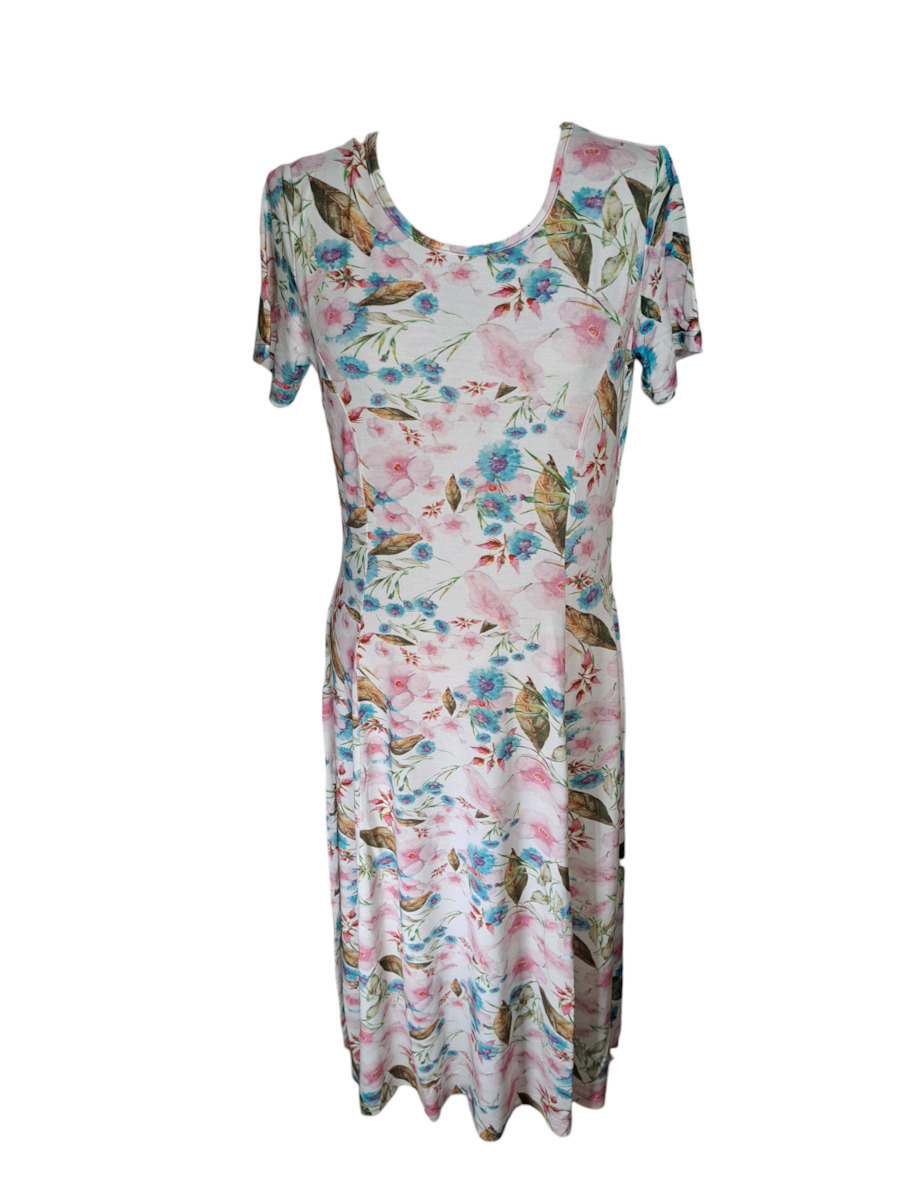 Galaxy Viscose Εκρού Εμπριμέ Φόρεμα Με Κοντό Μανίκι.