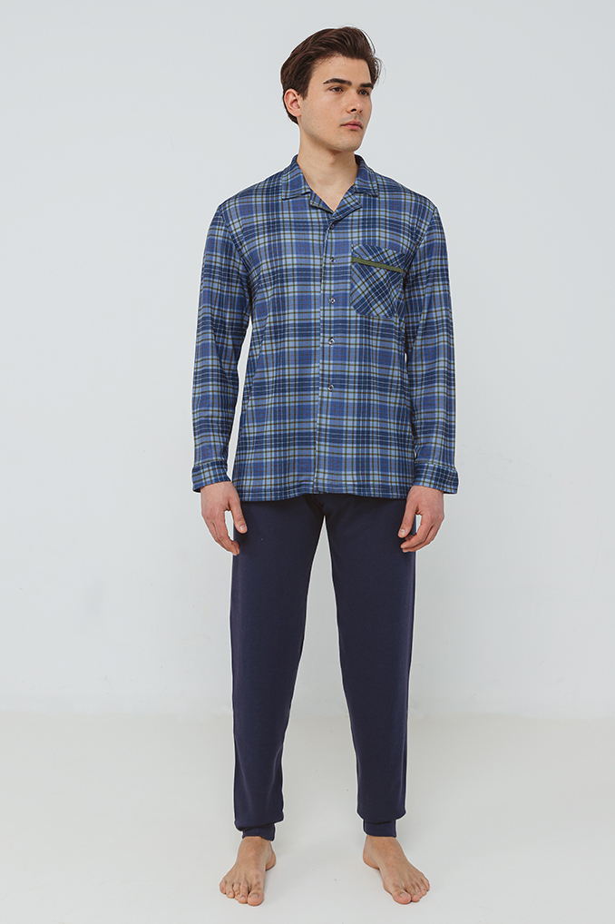 Γιώτα Μπλε Βαμβακερή Κουμπωτή Ανδρική Πιτζάμα.