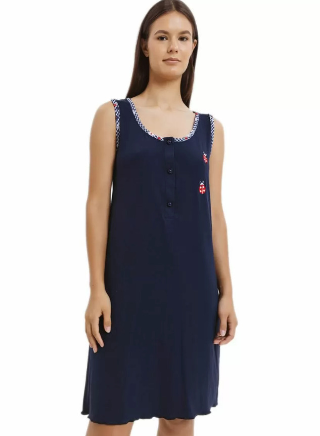 Giota Μπλε Βαμβακερό Νυχτικό Με Ώμο.