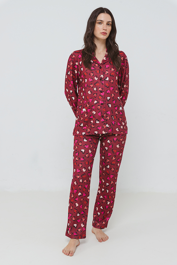 Γιώτα Μπορντώ Εμπριμέ Βαμβακερή Κουμπωτή Πιτζάμα.