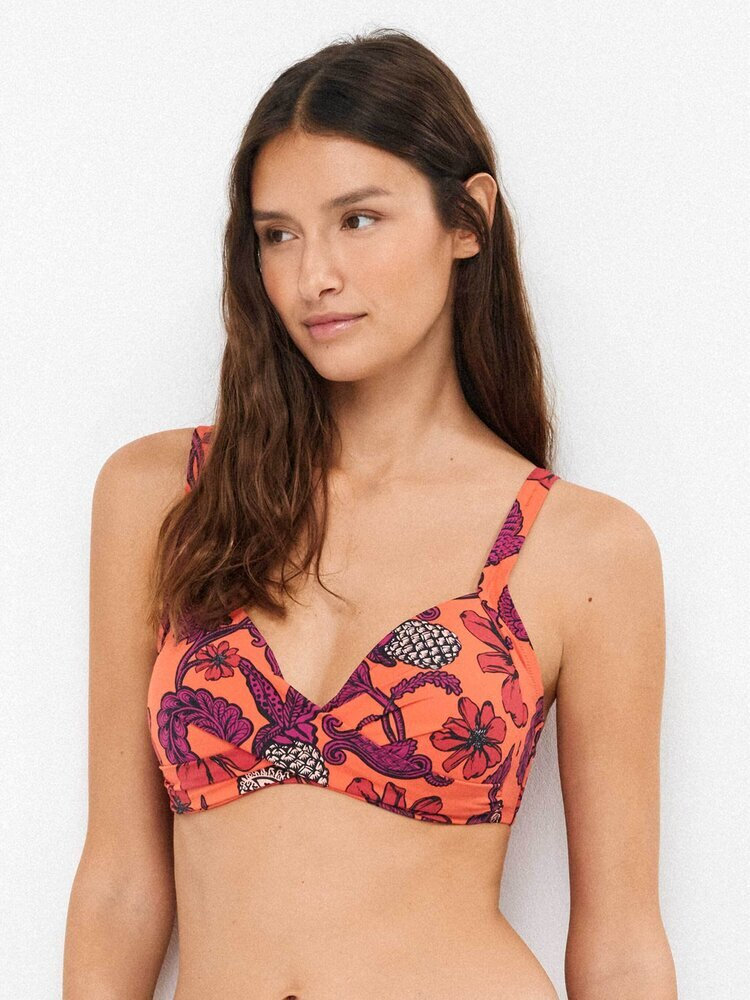Gisela Πορτοκαλί Εμπριμέ Μαγιό Top, Χωρίς Μπανέλες, Με Ελαφριά Επένδυση.