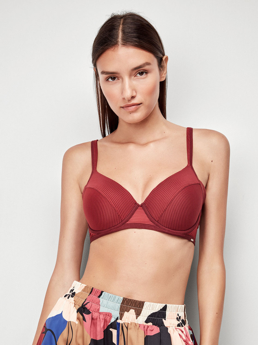 Gisela ριγέ μπορντό σουτιέν με μπανέλα και ελαφριά επένδυση.