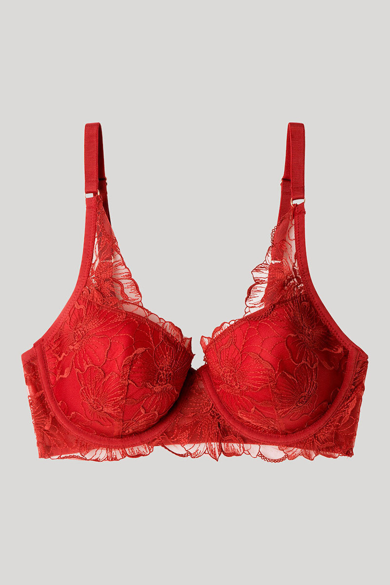 Gisela Σκούρο Κόκκινο Σουτιέν Με Δαντέλα, Μπανέλες & Ελαφριά Επένδυση.
