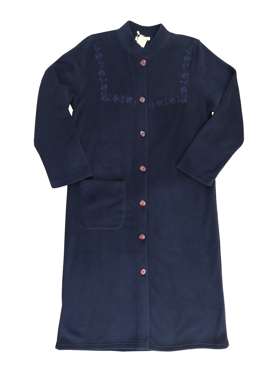 Jeannette μπλε κουμπωτή φλις γυναικεία ρόμπα με κέντημα.