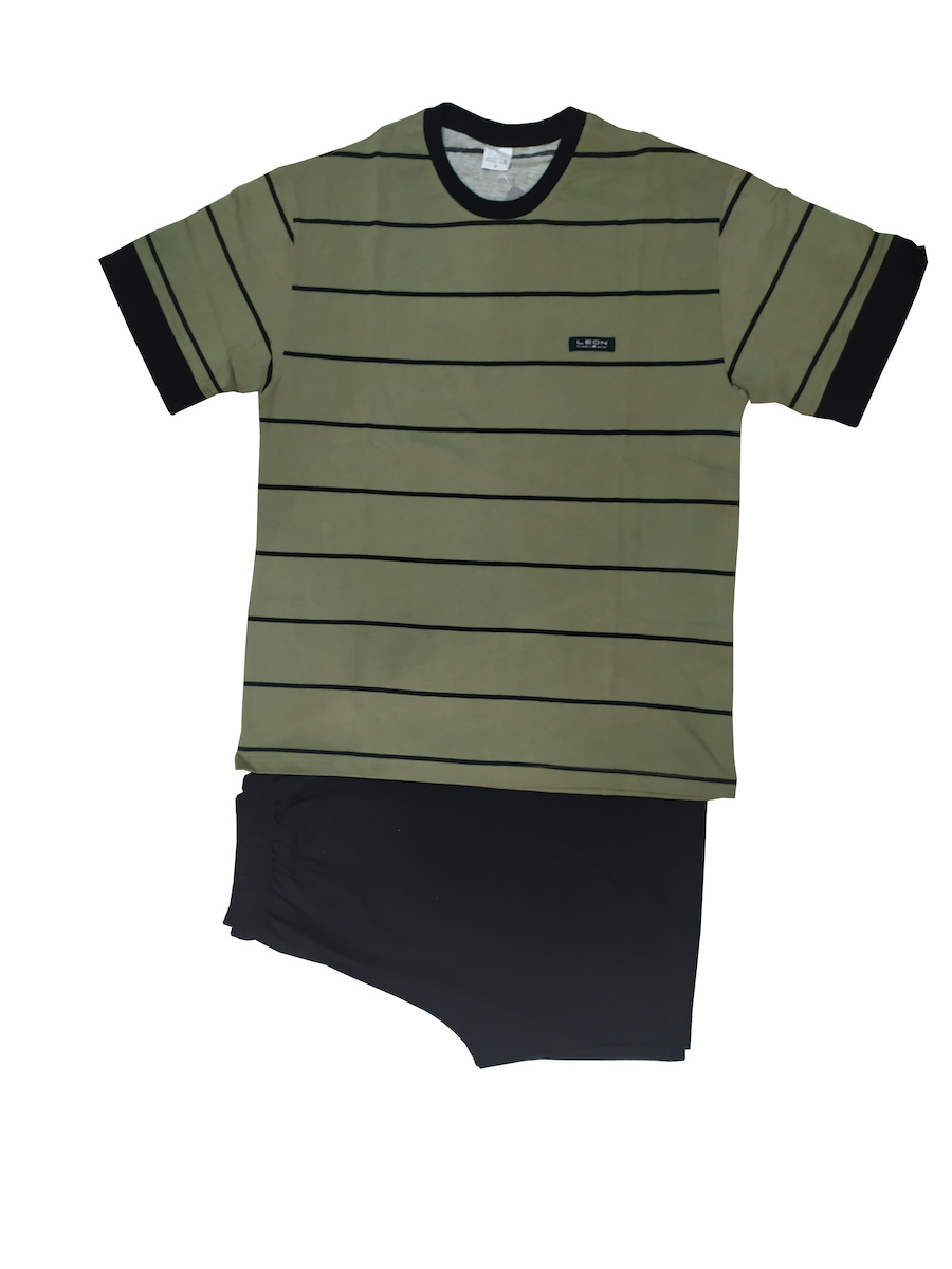 Leon ανδρική πιτζάμα λαδί/μαύρη κοντομάνικι με σορτς.