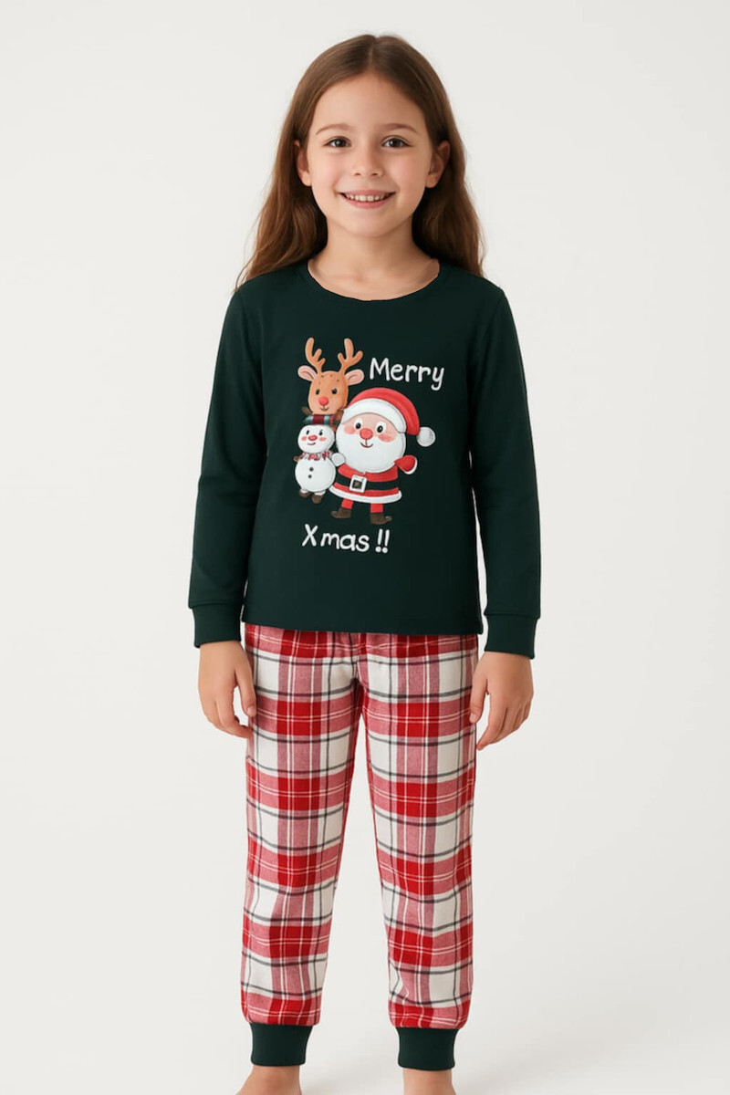 Little Unicorn Πράσινη/Καρό Xmas Παιδική Πιτζάμα Φούτερ.