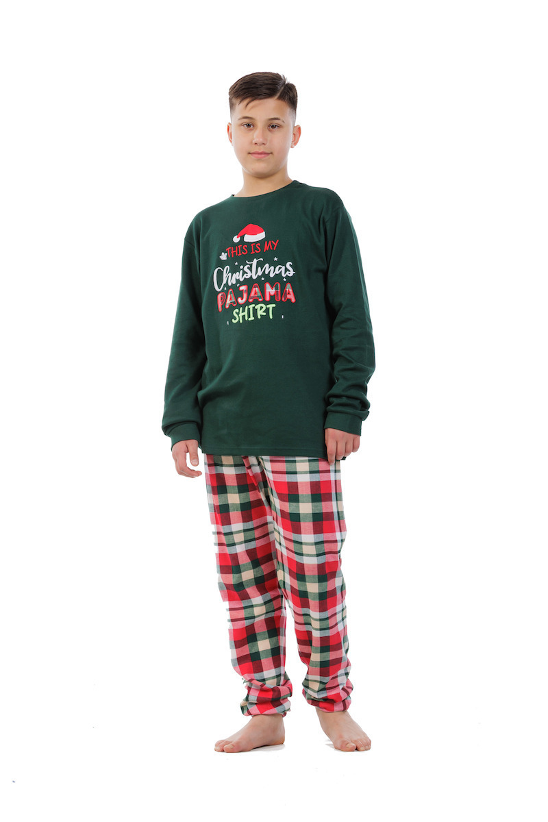 Mei Unisex Βαμβακερές Παιδικές Πιτζάμες Πράσινες Καρό.