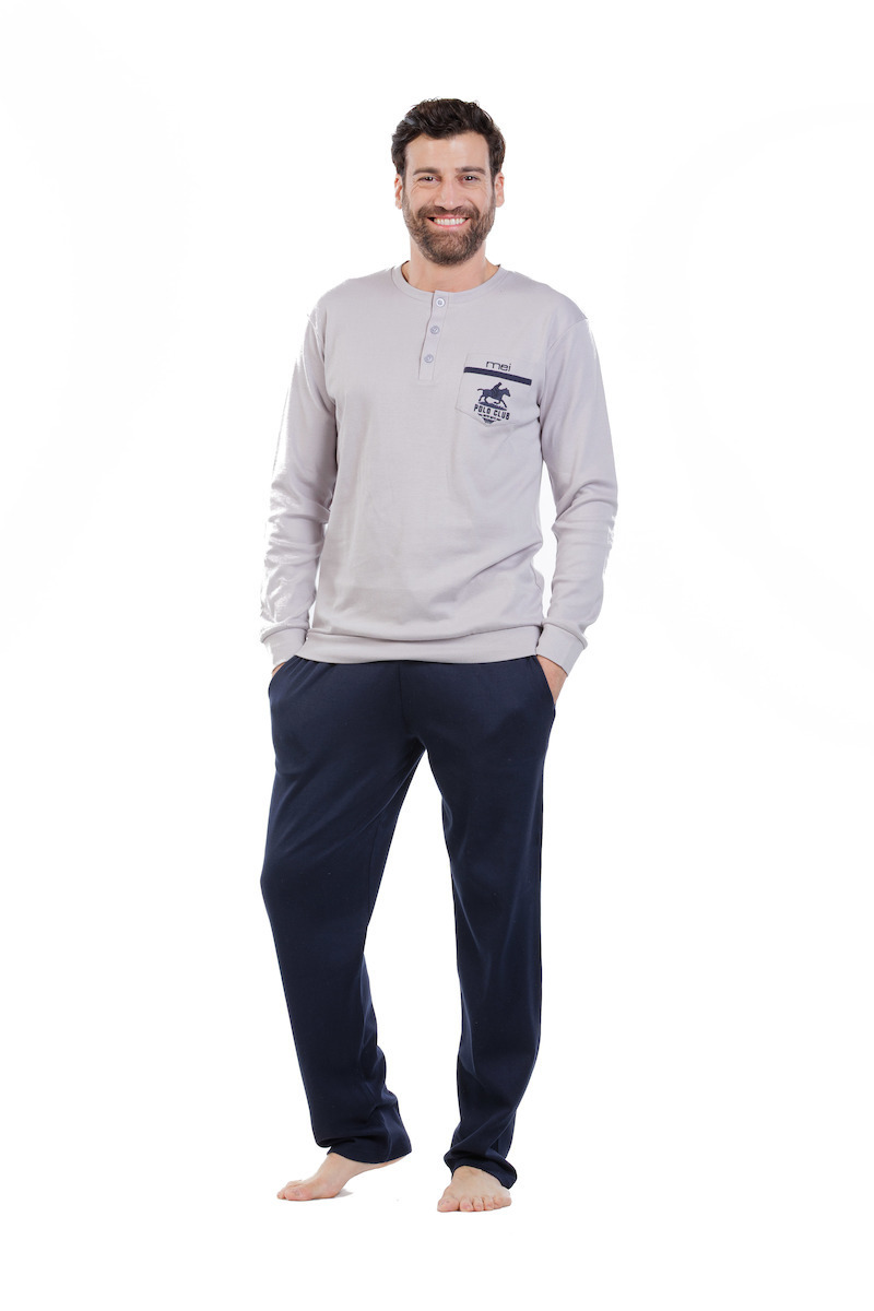 Mei Βαμβακερές Ανδρικές Πιτζάμες Γκρι/Μπλε.