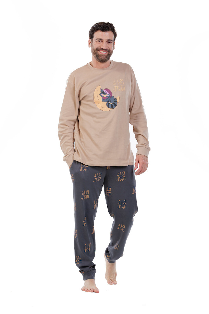Mei Βαμβακερές Ανδρικές Πιτζάμες Μπεζ/Ανθρακί.