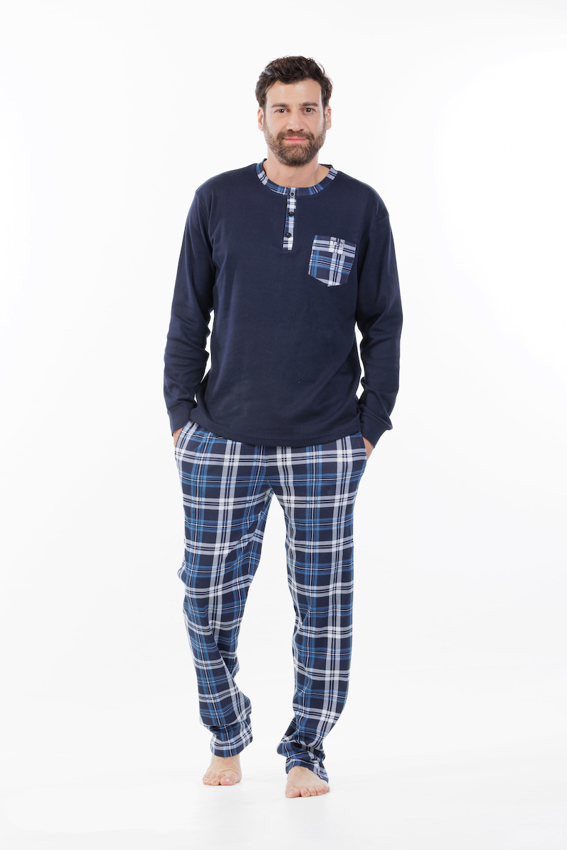 Mei Βαμβακερές Ανδρικές Πιτζάμες Μπλε Καρό.