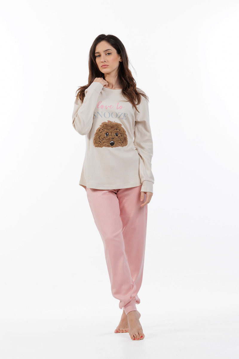 Mei Βαμβακερές Γυναικείες Πιτζάμες Εκρού/Ροζ.