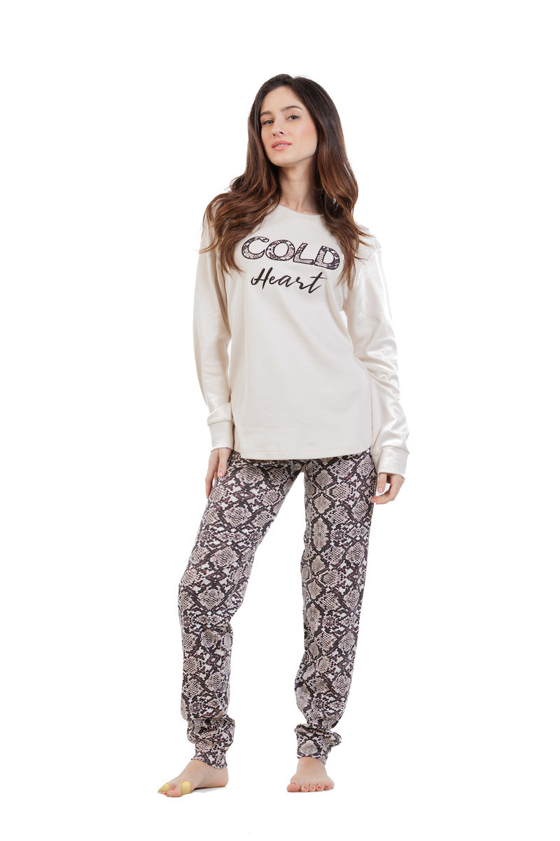 Mei Βαμβακερές Γυναικείες Πιτζάμες Εκρού Snake Print.