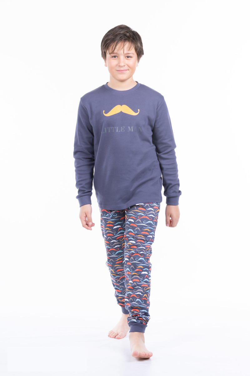 Mei βαμβακερή ανθρακί παιδική πιτζάμα με μουστάκια.