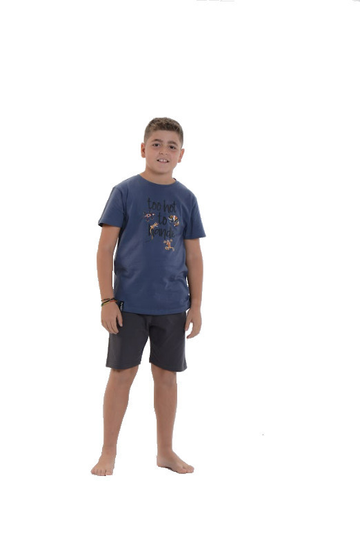 Mei βαμβακερή μπλε/ανθρακί παιδική πιτζάμα κοντό μανίκι/βερμούδα.