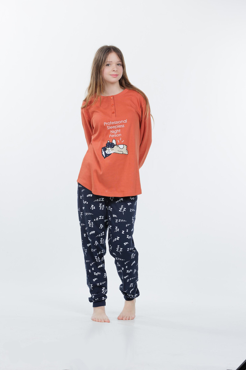 Mei Βαμβακερή Παιδική Πιτζάμα Κεραμιδί/Μπλε Εμπριμέ.
