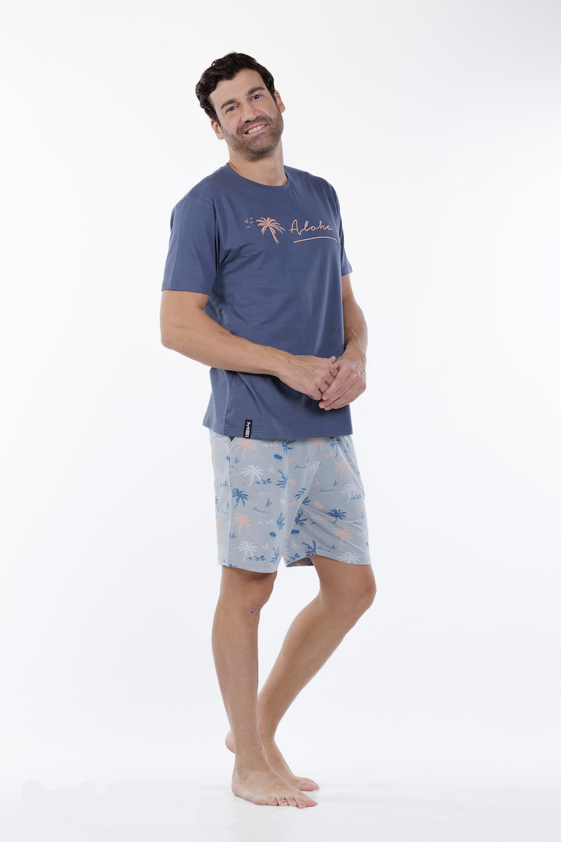 Mei Βαμβακερή Ραφ Ανδρική Πιτζάμα Με Σορτς.