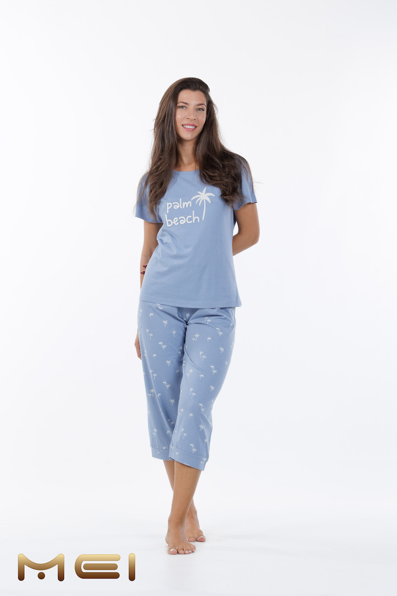 Mei Βαμβακερή Σιέλ Γυναικεία Πιτζάμα "Palm Beach".