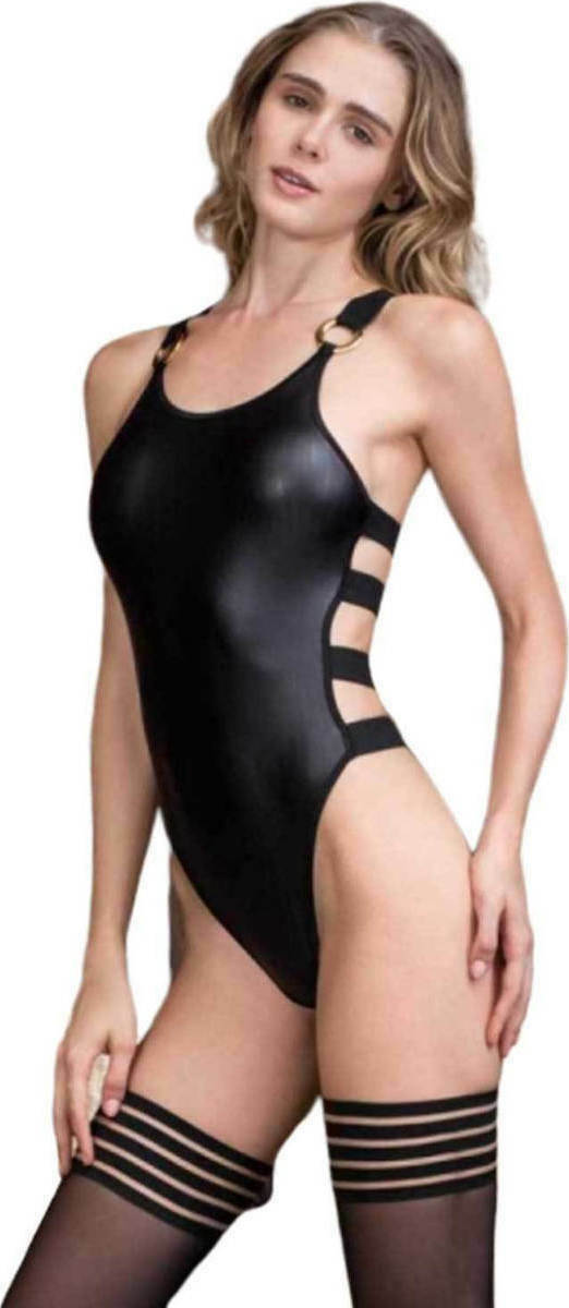 Milena Μαύρο κορμάκι string δερματίνη με λάστιχα στην πλάτη.