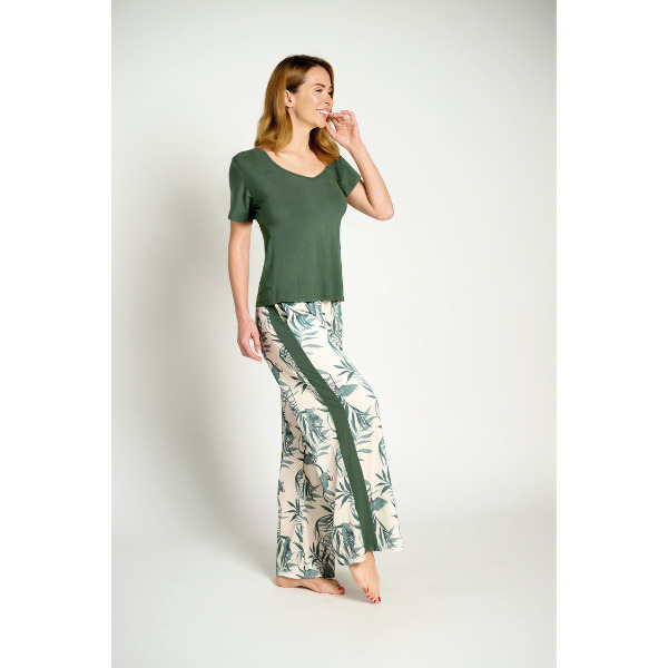 Muydemi Χακί/Εμπριμέ Γυναικεία Πιτζάμα Με Μακρύ Σατέν Παντελόνι.