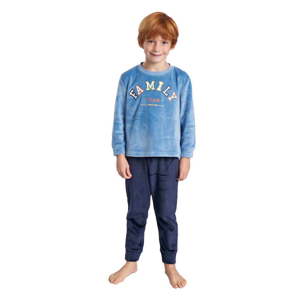 Muydemi γαλάζια/μπλε φλις βελουτέ παιδική πιτζάμα.